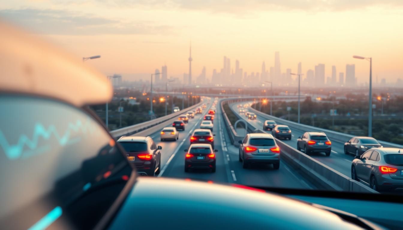 Connected Car Data Analytics: A visualization of the insights gathered from a network of interconnected vehicles. In the foreground, a sleek, modern dashboard displays real-time data and analytics, reflecting the seamless integration of sensors and technologies. The middle ground showcases a vibrant city landscape, with vehicles communicating and exchanging data to optimize traffic flow and energy efficiency. In the background, a serene, futuristic cityscape frames the scene, hinting at the potential for connected car data to transform urban environments. Soft, diffused lighting and a subtle, minimalist color palette convey a sense of sophistication and innovation, capturing the essence of leveraging connected car data for business growth.