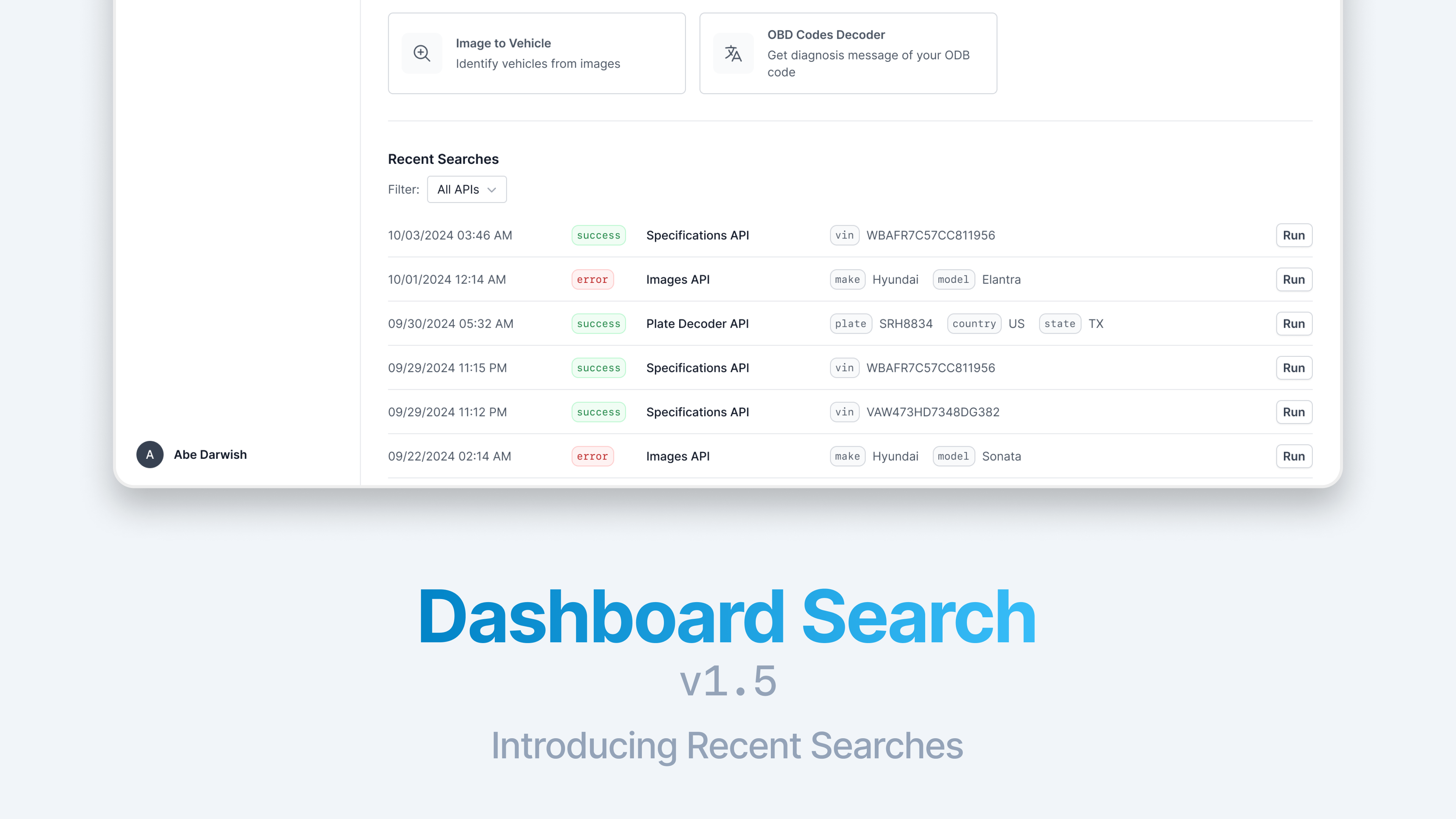 Stay organized with Dashboard Search 1.5, which lets you track and review your previous API search queries directly from your dashboard. It's perfect for monitoring trends, optimizing workflows, and gaining actionable insights into your data usage. Try Dashboard Search.